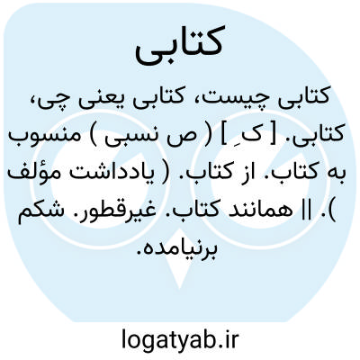 (کِ ) [ ع - فا. ] ۱ - (ص نسب. ) منسوب به کتاب: کافر کتابی. ۲ - (اِ. ) نوعی شیشة مخصوص مشروب، بغلی.