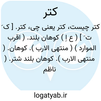کتر. [ ک َ ت َ ] ( ع اِ ) کوهان بلند. ( اقرب الموارد ) ( منتهی الارب ). کوهان. ( منتهی الارب ). کوهان بلند شتر. ( ناظم الاطباء ). کَترَة. رجوع به کتر [ ک َ / ک ِ ] و رجوع به کترة شود.