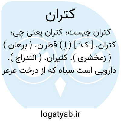 کتران. [ ک َ ] ( اِ ) قطران. ( برهان ) ( زمخشری ). کتیران. ( آنندراج ). دارویی است سیاه که از درخت عرعر که آن سرو کوهی است گیرند و بعضی گویند ازدرخت صنوبر میگیرند. رشک و شپش را می کشد و علت گر وجرب انسان و حیوان خصوصاً شتر گرگین را مالیدن آن نافع باشد و قطران معرب آن است. ( برهان ). صمغ سرو کوهی که آن سرو را ابهل گویند و آن صمغ بغایت حارو محرق است بهتر آن است که از درخت عرعر حاصل نمایند و آتش زود در آن میگیرد و بر شتر گرگین مالند نافع بود و معرب آن قطران است. ( آنندراج ). رجوع به قطران شود.