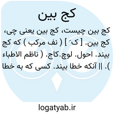 کج بین. [ ک َ ] ( نف مرکب ) که کج بیند. احول. لوچ.کاج. ( ناظم الاطباء ). || آنکه خطا بیند. کسی که به خطا نگرد. ( فرهنگ فارسی معین ):