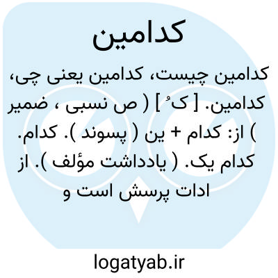 کدامین. [ ک ُ ] ( ص نسبی، ضمیر ) از: کدام + ین ( پسوند ). کدام. کدام یک. ( یادداشت مؤلف ). از ادات پرسش است و تردید را رساند و همیشه مقدم بر اسم آید. کدامی. ( از فرهنگ فارسی معین ):