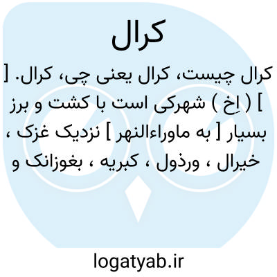 کرال. [ ] ( اِخ ) شهرکی است با کشت و برز بسیار [ به ماوراءالنهر ] نزدیک غزک، خیرال، ورذول، کبریه، بغوزانک و از آنجا اسب خیزد. ( از حدود العالم ).