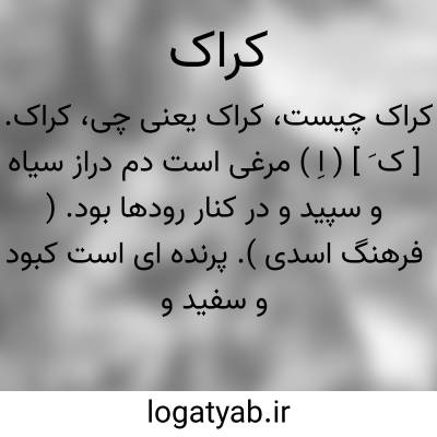 ( اسم ) کرک بلدر چین: [ چنان اندیشد او از دشمن خویش که باز تیز چنگال از کراکا ]. ( دقیقی رودکی ) توضیح: در فرهنگها بمعنی عکه ( کشکرک ) و نیز دم جنبانک آورده اند.