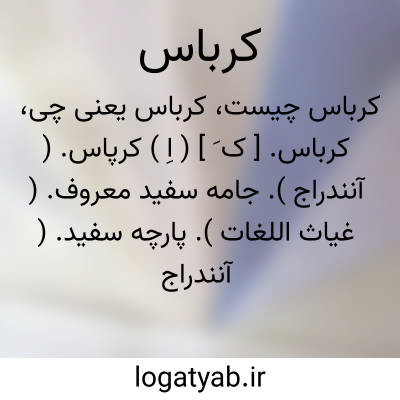 ( اسم ) پارچ. پنبه یی سفید و ارزان قیمت: [ و گر چرخ اطلس رود بر خلافت روانی چو کربا سش از هم درانی ]. یا سر و ته یک کرباس بودن مساوی هم بودن معادل هم بودن: [ هم. شما سر و ته یک کرباسید ].
