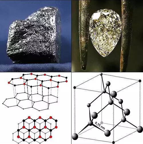 اتم های کربن می توانند به صورت های مختلفی با یک دیگر پیوند برقرار نمایند که این موجب می شود تا دگرشکل های متنوعی از کربن تشکیل شود. شناخته شده ترین دگرشکل های کربنی، گرافیت، الماس و فولرن باکمینستر هستند. خواص فیزیکی کربن در هر کدام از دگرشکل های کربنی متفاوت است. به عنوان مثال گرافیت دارای ظاهری کدر و سیاه رنگ است، در حالی که الماس کاملاً شفاف است. گرافیت به قدری نرم است که می تواند برروی کاغذ اثری از خود برجا بگذارد و خود واژه گرافیت نیز از واژه ای یونانی به معنای نوشتن[ b] برگرفته شده است. درحالی که الماس، سخت ترین ترکیب طبیعی یافت شده بر روی زمین است. گرافیت یک هدایت کننده خوب جریان الکتریکی است، درحالی که الماس یک رسانای ضعیف جریان الکتریکی است. در فشار معمولی، الماس، نانولوله های کربنی و گرافین، دارای بالاترین رسانندگی گرمایی در بین تمام ترکیبات شناخته شده هستند. آنها در مقابل تغییرات شیمیایی مقاوم هستند و برای این که با اکسیژن وارد واکنش شوند یا به عبارت دیگر برای این که سوزانده شوند، به دمای بالا نیاز دارند.