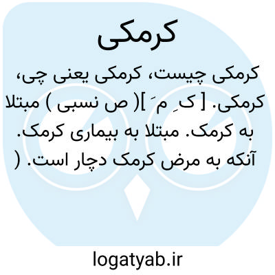 کرمکی. [ ک ِ م َ ]( ص نسبی ) مبتلا به کرمک. مبتلا به بیماری کرمک. آنکه به مرض کرمک دچار است. ( یادداشت مؤلف ). || زن یا پسر بد. زنی که به عمل ناشایست راغب است. بدعمل زن. در تداول لوطیان، آنکه مایل به تباهکاری دیگران با خود باشد. ( یادداشت مؤلف ). || اطواری. || شهوی. || کسی که دیگران را بوسیله ای آزار کند. موذی. ( فرهنگ فارسی معین ).