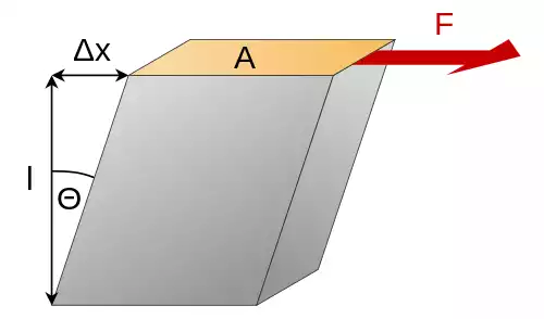 مقدار آن برابر است با تانژانت زاویه تغییر یافتن حالت جسم در اثر تنش یا مقدار جابجایی سطحی که بر آن تنش برشی اعمال شده تقسیم بر فاصله همان سطح از نقطه ای که سطحی که جابجایی آن صفر است. یا از لحظ فرمولی: