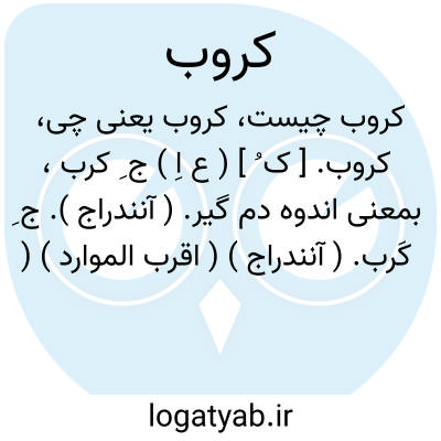 کروب. [ ک ُ ] ( ع اِ ) ج ِ کرب، بمعنی اندوه دم گیر. ( آنندراج ). ج ِ کَرب. ( آنندراج ) ( اقرب الموارد ) ( منتهی الارب ): و جز اجتماع احزان و کروب و تفرق اهواء قلوب لشکری مرتب نشد. ( جهانگشای جوینی ). رجوع به کرب شود.