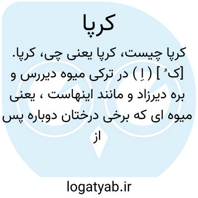 کرپا. [ک ُ ] ( اِ ) در ترکی میوه دیررس و بره دیرزاد و مانند اینهاست، یعنی میوه ای که برخی درختان دوباره پس از سپری شدن هنگام میوه دهی خود می دهند یا بره ای که برخی گوسفندان دوباره در تابستان می زایند. ولی چون این گونه میوه ها و بره ها همیشه کوچکتر از دیگر میوه ها وبره ها می باشند از اینجا کرپا را به معنی کوچک بکار برده اند و هم اکنون در آذربایجان کرپه به همین معنی است. ( از شهریاران گمنام ص 241 ). رجوع به کرپه شود.