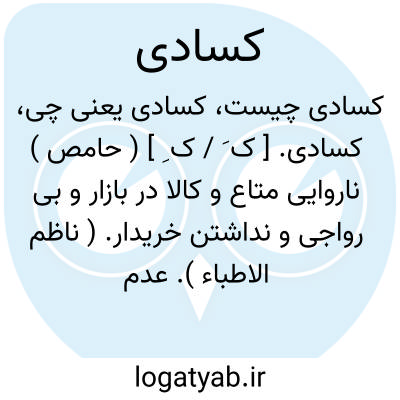 کسادی. [ ک َ / ک ِ ] ( حامص ) ناروایی متاع و کالا در بازار و بی رواجی و نداشتن خریدار. ( ناظم الاطباء ). عدم رواج. صاحب آنندراج گوید یاء مصدری به کساد ملحق کنند و بهمان معنی مصدری استعمال کنند از عالم ( از قبیل ) نقصان و نقصانی و جریان و جریانی. ( آنندراج ). کاسد بودن. بی رونقی و ناروایی: