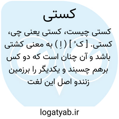 کستی. [ ک ُ ] ( اِ ) به معنی کشتی باشد و آن چنان است که دو کس برهم چسبند و یکدیگر را برزمین زنندو اصل این لغت کستی است چه از کستن مشتق است که به معنی کوفتن باشد و چون در فارسی سین بی نقطه و شین نقطه دار بهم تبدیل می یابند بنابر آن کشتی خوانند. ( برهان ). به معنی کشتی مشهور است و اصل این لغت از کوفتن است چه دوتن بریکدیگر چسبند و هرکه قوی تر و غالب باشددیگری را بر زمین کوبد و کوفته کند به تغییر السنه سین به شین تبدیل یافته است. ( آنندراج ):