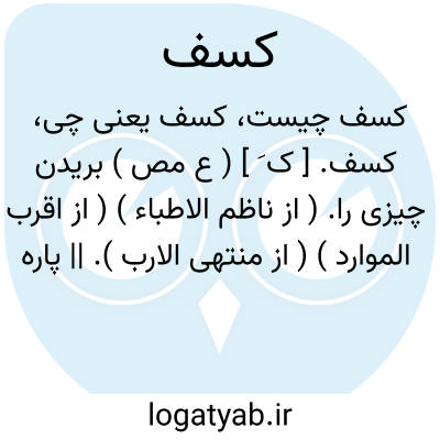 کسف. [ ک َ ] ( ع مص ) بریدن چیزی را. ( از ناظم الاطباء ) ( از اقرب الموارد ) ( از منتهی الارب ). || پاره کردن و بریدن جامه. ( ناظم الاطباء ) ( از منتهی الارب ). || بد گردیدن حال کسی. || نگونسار کردن چشم را. ( ازناظم الاطباء ) ( از منتهی الارب ) ( از اقرب الموارد ). || عبوس و ترشروی شدن. ( از اقرب الموارد ). ترشروی شدن و درباره بخیل ترشروی گویند: اکسفا و امساکاً. ( از ناظم الاطباء ). ترشروی شدن، منه المثل اکسفاً و امساکاً؛ یعنی ترشروئی یا زفتی و در حق بخیل ترشروی گویند. ( از منتهی الارب ). || گرفته شدن آفتاب و ماه. ( از منتهی الارب ) ( از ناظم الاطباء ). || گرفته گردانیدن خدای ماه و آفتاب را، لازم و متعدی هردو آید. ( از منتهی الارب ) ( از ناظم الاطباء ) ( از اقرب الموارد ). بهتر آن است که در ماه گرفتن خسف و در آفتاب گرفتن کسف بکار رود. ( از اقرب الموارد ) ( از منتهی الارب ). || غالب آمدن نور آفتاب بر ستاره ها و دیده نشدن آنها. ( از ناظم الاطباء ) ( از اقرب الموارد ). و قول جریر که گوید: