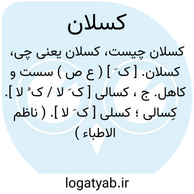 کسلان. [ ک َ ] ( ع ص ) سست و کاهل. ج، کسالی [ ک َ لا / ک ُ لا ]. کِسالی؛ کسلی [ ک َ لا ]. ( ناظم الاطباء ) ( اقرب الموارد ). و کسالی [ ک ِ لا ]. ( ناظم الاطباء ).