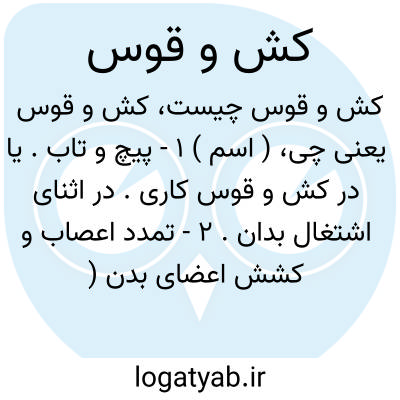 ( اسم ) ۱ - پیچ و تاب. یا در کش و قوس کاری. در اثنای اشتغال بدان. ۲ - تمدد اعصاب و کشش اعضای بدن ( همچون کشیدن زه کمان ) خمیازه: سگ کش و قوسی کرد و رفت.