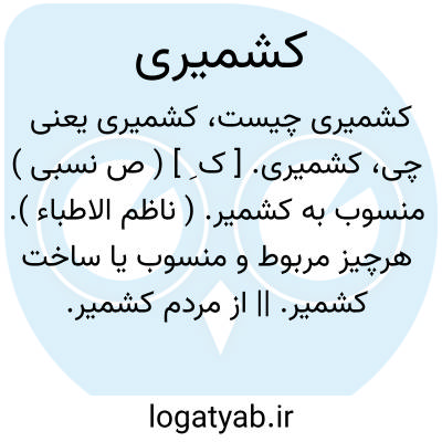 ( صفت ) منسوب به کشمیر. ۱ - از مردم کشمیر اهل کشمیر: ( بشعر حافظ شیراز میرقصند و مینازند سیه چشمان کشمیری و ترکان سمرقندی ). ( حافظ ) ۲ - ساخت. کشمیر: شال کشمیری.