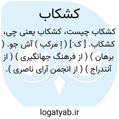 کشکاب. [ ک َ] ( اِ مرکب ) آش جو. ( برهان ) ( از فرهنگ جهانگیری ) ( از آنندراج ) ( از انجمن آرای ناصری ). هرگاه در کتب طب کشکاب مطلق گویند مراد کشکاب جو باشد و اگر کشکاب از چیز دیگر گفتن خواهند کشکاب را بر آن اضافه کنند مثلاً کشکاب گندم و جز آن گویند. ( از یادداشت مؤلف ). کشکبا. کشکاو: