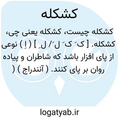 کشکله. [ ک َ ک َ ل َ/ ل ِ ] ( اِ ) نوعی از پای افزار باشد که شاطران و پیاده روان بر پای کنند. ( آنندراج ) ( برهان ):