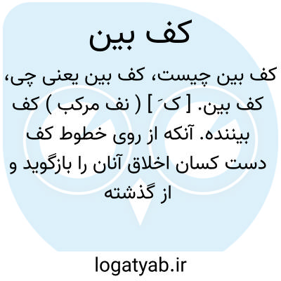 کف بین. [ ک َ ] ( نف مرکب ) کف بیننده. آنکه از روی خطوط کف دست کسان اخلاق آنان را بازگوید و از گذشته و آینده ایشان خبر دهد. ( فرهنگ فارسی معین ).