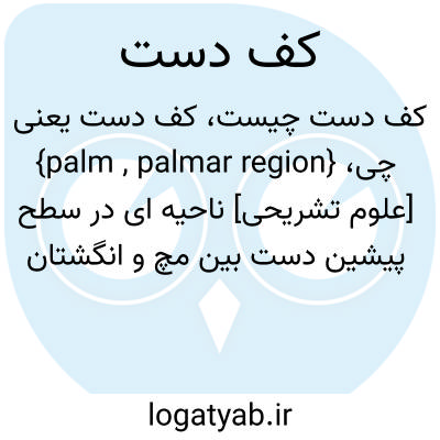 {palm , palmar region} [علوم تشریحی] ناحیه ای در سطح پیشین دست بین مچ و انگشتان