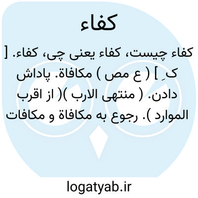 کفاء. [ ک َ ] ( ع اِ ) پاداش. ( منتهی الارب ) ( آنندراج ). پاداش و جزا. || همتا و مانند. ( ناظم الاطباء ).