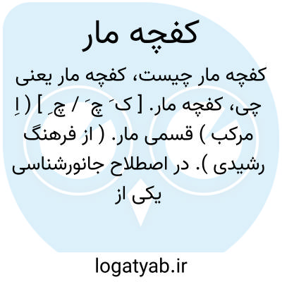 ( اسم ) ۱ - یکی از اقسام ماران سمی خطر ناک که دارا ی زهری کشنده است و از گروه پروترو گلیف میباشد. این مار در سطح قدامی دندانها ی جلو آروار. بالا یی دارا ی شیاری است که تا نوک دندان ادامه دارد و در آن شیار سم جاری میشود. وجه تسمی. این دسته ماران از آن جهت است که زواید مهره های گردنی خود را باختیار میتوانند پهن کنند و در این حال قسمت سر و گردن آنها بصورت کفچه یا قاشق پهنی در میاید. کفچه ماران دارای اقسام متعددند و هم. آنها خطرناکند. گونه ای از آنها در افریقا و مصر وجود دارد ( مشهور است که کلئو پاترا ملک. نامدار مصر باز هر یکی از همین کفچه ماران افریقایی انتحارکرد. ) نوعی از کفچه ماران در کوهستانها ی اطراف مشهد فراوانند و نیز گونه ای از آنها مار عینکی است که در موقع پهن کردن زواید مهره های گرد نیش شکل عینکی در سطح خلفی پوست بدنش نقش می بندد ( وجه تسمیه ) و جزو خطرناکتر ین کفچه هاست و در هندوستان فراوان است و بنام کبرا نیز خوانده میشود: ( همچو مار کفچه این گردنده دهر کفچه رنگین است اما پر ز زهر ). ( سراج الدین ) ۲ - سر زلف پر پیچ و تاب.