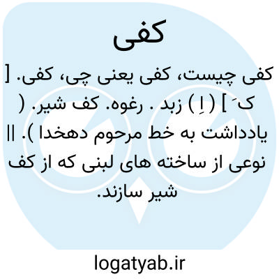 کفی. [ ک َ ] ( اِ ) زبد. رغوه. کف شیر. ( یادداشت به خط مرحوم دهخدا ). || نوعی از ساخته های لبنی که از کف شیر سازند. چیزی که مانند کفک از شیر کنند و آن نان خورش است. ( یادداشت به خط مرحوم دهخدا ).