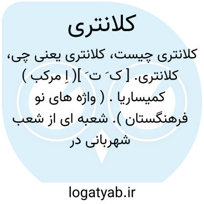 ۱ - عمل و شغل کلانتر: ( ملا افضل منجم قزوینی که سمت خانه خواهی نواب مهد علیا داشت کمال اعتبار و اقتدار یافته مهم کلانتری و معاملات دیوانی قزوین باو متعلق گشت ). ۲ - مهتری بزرگی. ۳ - ( اسم ) شعبه ای از شعب شهربانی در نقاط مختلف شهر که مامور ایجاد حفظ و نظم در حوزه و محل. خود میباشد کمیساریا کمیسری.