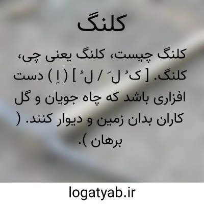 کلنگ. [ ک ُ ل َ / ل ُ ] ( اِ ) دست افزاری باشد که چاه جویان و گل کاران بدان زمین و دیوار کنند. ( برهان ). بمعنی افزاری است برای کندن زمین که از آهن می سازند و دسته از چوب می دارد و به این معنی کلند نیزآمده. ( آنندراج ). کلند و دست افزاری که بدان زمین و دیوار کنند. ( ناظم الاطباء ). مِعوَل. آهنی نوک تیز بادسته چوبین که بدان زمین و دیوار کنند. کلند. ( یادداشت به خط مرحوم دهخدا ): پس الیاس گفت اگر روزی که شما باز نشینید، این آبهای شما خشک شده باشد شما چه خواهید کردن ؟ گفتند کلنگ و تیشه را کار فرماییم. آن شب همه بخفتند بامداد که بازنشستند همه راآب به چشم فرود آمده بود و چشمه ها خشک شده... آن پیمبر ایشان را گفت کلنگ و تیشه را کار فرمایید. ( اسکندرنامه نسخه نفیسی، یادداشت به خط مرحوم دهخدا ).