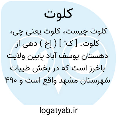 کلوت. [ ک َ ] ( اِخ ) دهی از دهستان یوسف آباد پایین ولایت باخرز است که در بخش طیبات شهرستان مشهد واقع است و 490 تن سکنه دارد. ( از فرهنگ جغرافیایی ایران ج 9 ).