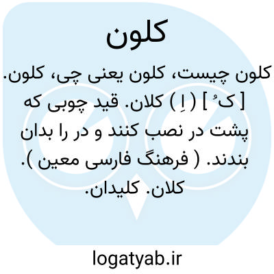 کلون. [ ک ُ ] ( اِ ) کلان. قید چوبی که پشت در نصب کنند و در را بدان بندند. ( فرهنگ فارسی معین ). کلان. کلیدان. غلق. فلج.( یادداشت به خط مرحوم دهخدا ). چفت و بست پشت در. ( فرهنگ لغات عامیانه جمالزاده ). و رجوع به کلان شود.