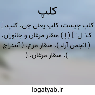 کلپ. [ ک َ ل َ ] ( اِ ) منقار مرغان و جانوران. ( انجمن آراء ). منقار مرغ. ( آنندراج ). منقار مرغان. ( ناظم الاطباء ). رجوع به کَلَب و کَلَفت شود. || گرداگرد دهان. ( آنندراج ). کلب و گرداگرد دهان. ( ناظم الاطباء ). و رجوع به کَلَب شود.