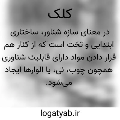 کلک. [ ک ِ ] ( اِ ) هر نی میان خالی را گویندعموماً. ( برهان ). نی است عموماً. ( آنندراج ). هر نی میان کاواک. ( ناظم الاطباء ). نی. ( فرهنگ فارسی معین ).قصب. نی. ( یادداشت به خط مرحوم دهخدا ):