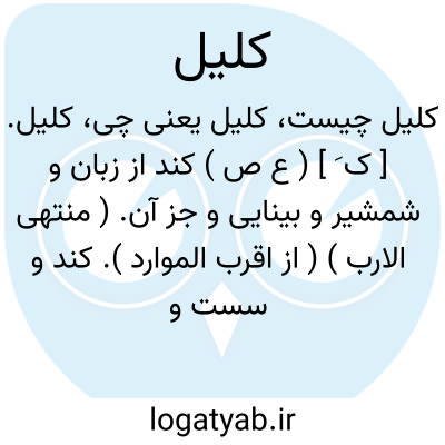 کلیل. [ ک َ ] ( ع ص ) کند از زبان و شمشیر و بینایی و جز آن. ( منتهی الارب ) ( از اقرب الموارد ). کند و سست و مانده شده و خیره و گنگ. ( آنندراج ) ( غیاث ). کنداز شمشیر و جز آن. ( ناظم الاطباء ). مانده. کند ( زبان، شمشیر ). ( یادداشت به خط مرحوم دهخدا ):