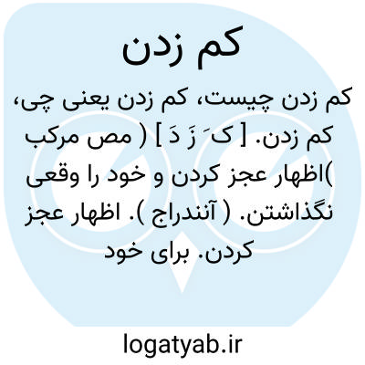 کم زدن. [ ک َ زَ دَ ] ( مص مرکب )اظهار عجز کردن و خود را وقعی نگذاشتن. ( آنندراج ). اظهار عجز کردن. برای خود اهمیتی قایل نشدن. فروتنی کردن. تواضع نمودن. ( فرهنگ فارسی معین ):