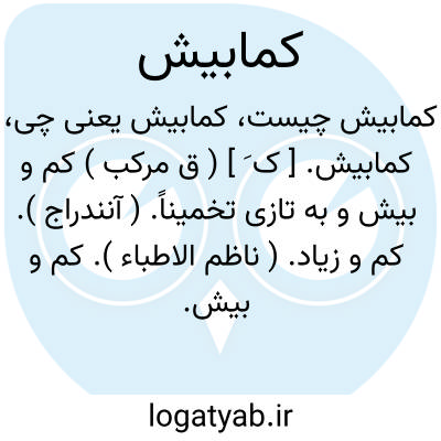 کمابیش. [ ک َ ] ( ق مرکب ) کم و بیش و به تازی تخمیناً. ( آنندراج ). کم و زیاد. ( ناظم الاطباء ). کم و بیش. اندک و بسیاری. ( فرهنگ فارسی معین ). تخمیناً. تقریباً.نزدیک... ( یادداشت به خط مرحوم دهخدا ):