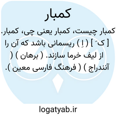 کمبار. [ ک َ ] ( اِ ) ریسمانی باشد که آن را از لیف خرما سازند. ( برهان ) ( آنندراج ) ( فرهنگ فارسی معین ).