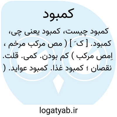 ۱ - کمی قلت اندکی نقصان: کمبود غذا کمبود عواید: ( کمبود را خرواری دومن حساب کند ). ۲ - چیزی یا پولی که در هنگام تراز کردن حساب کم میاید. توضیح در تداول کمبودی استعمال کنند و صحیح نیست بهبود.