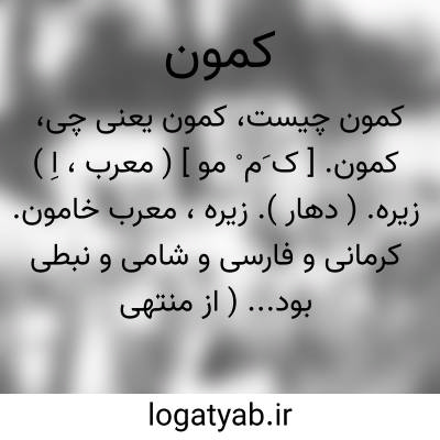 کمون. [ ک َم ْ مو ] ( معرب، اِ ) زیره. ( دهار ). زیره، معرب خامون. کرمانی و فارسی و شامی و نبطی بود... ( از منتهی الارب ) ( از آنندراج ). زیره. ( ناظم الاطباء ). معرب از «کومی نوم » لاتینی. زیره. ( فرهنگ فارسی معین ). نباتی بری و بستانی است دارای دانه، و انواع بسیاری دارد از جمله کرمانی، سیاه و فارسی، زرد و شامی و نبطی و کمون معمولی، سفید است. ( از اقرب الموارد ). معرب از خامون یونانی است و به فارسی زیره نامند. بری و بستانی می باشد و هریک را اصناف مختلفه است: سیاه بری و بستانی را کمون کرمانی و زرد را فارسی و شامی و سفید را نبطی نامندو اخیر زیره سبز است و در اکثر امکنه می باشد و بری هر صنفی قویتر از بستانی و صنفی از بری سیاه می باشدو شبیه است به شونیز و قوی الحرارت است و از مطلق کمون مراد کرمانی است و به یونانی او را باسلیقون نامند و به معنی ملوکی است و بهترین اقسام کرمانی است و زبون ترین، سفید بستانی است، و قوتش تا هفت سال باقی می ماند و نبات آن از رازیانه کوچکتر و برگش مستدیر مانند شبت است... ( از تحفه حکیم مؤمن ):