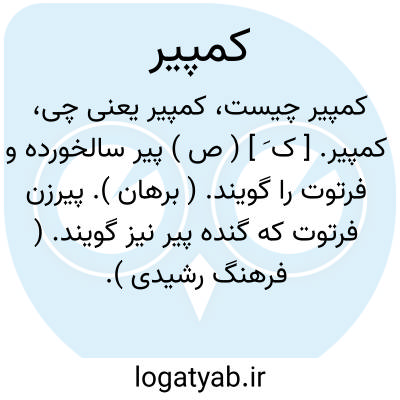 کمپیر. [ ک َ ] ( ص ) پیر سالخورده و فرتوت را گویند. ( برهان ). پیرزن فرتوت که گنده پیر نیز گویند. ( فرهنگ رشیدی ). پیر سالخورده و فرتوت عموماً و زن پیر خصوصاً و این لغت در اصل گنده پیر بوده که عرب آن را غنده فیر معرب کرده اند و در کمپیر میم و نون تبدیل شده و مخفف گردیده و در خراسان بسیار استعمال نمایند. ( انجمن آرا ). پیر سالخورده. فرتوت. ( ناظم الاطباء ) ( فرهنگ فارسی معین ):