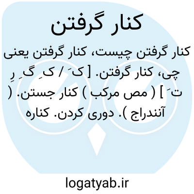 کنار گرفتن. [ ک َ / ک ِ گ ِ رِ ت َ ] ( مص مرکب ) کنار جستن. ( آنندراج ). دوری کردن. کناره گرفتن: