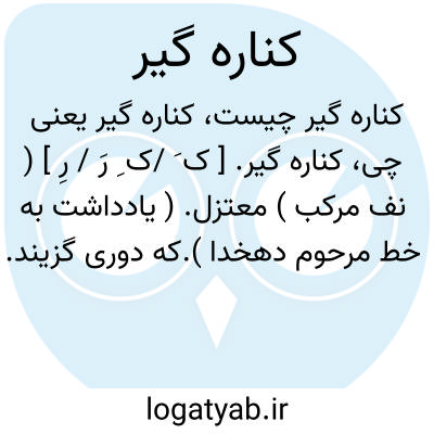 کناره گیر. [ ک َ /ک ِ رَ / رِ ] ( نف مرکب ) معتزل. ( یادداشت به خط مرحوم دهخدا ).که دوری گزیند. که گوشه گیرد و دوری کند.
