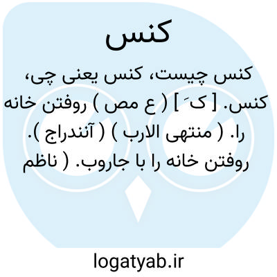 کنس. [ ک َ ] ( ع مص ) روفتن خانه را. ( منتهی الارب ) ( آنندراج ). روفتن خانه را با جاروب. ( ناظم الاطباء ) ( از اقرب الموارد ) ( از دزی ج 2 ص 493 ). خانه رفتن. ( تاج المصادر بیهقی ) ( دهار ) ( المصادر زوزنی ).