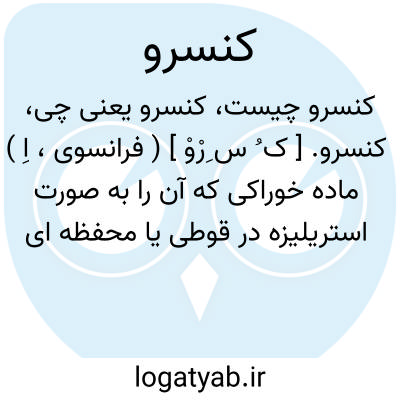 کنسرو. [ ک ُ س ِرْوْ ] ( فرانسوی، اِ ) ماده خوراکی که آن را به صورت استریلیزه در قوطی یا محفظه ای کاملاً مسدود نگهداری کنند. ( فرهنگ فارسی معین ).