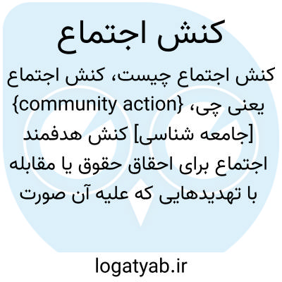 {community action} [جامعه شناسی] کنش هدفمند اجتماع برای احقاق حقوق یا مقابله با تهدیدهایی که علیه آن صورت می گیرد