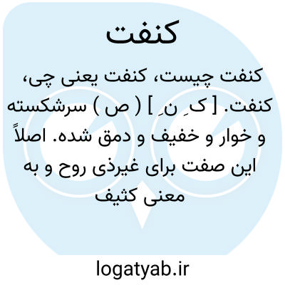 کنفت. [ ک ِ ن ِ ] ( ص ) سرشکسته و خوار و خفیف و دمق شده. اصلاً این صفت برای غیرذی روح و به معنی کثیف است: پارچه کنفت، کاغذ کنفت، کتاب کنفت. امابعد بر سبیل توسع برای انسان نیز به کار رفته است. ( فرهنگ لغات عامیانه جمال زاده ). کنف. ( فرهنگ فارسی معین ). و رجوع به کنف و کنفت شدن و کنفت کردن شود.