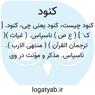 دولتش دیر نماند که کفور است و کنود.سعدی.|| کافر. ( از منتهی الارب ) ( آنندراج ) ( ناظم الاطباء ) ( اقرب الموارد ). || نکوهنده خدای را. ( منتهی الارب ) ( آنندراج ). نکوهنده پروردگار خود. ( ناظم الاطباء ) ( از اقرب الموارد ). || بخیل. ( منتهی الارب ) ( آنندراج ) ( ناظم الاطباء ) ( اقرب الموارد ) ( فرهنگ فارسی معین ). || نافرمان. ( منتهی الارب ) ( آنندراج ) ( ناظم الاطباء ). عاصی. ( از اقرب الموارد ). عصیان کننده. عاصی. ( فرهنگ فارسی معین ). || تنهاخورنده و بازدارنده عطای خود را. ( منتهی الارب ) ( آنندراج ) ( ناظم الاطباء ) ( از اقرب الموارد ). || زننده غلام را. ( از منتهی الارب ) ( آنندراج ). کسی که بنده خود را زند. ( ناظم الاطباء ) ( از اقرب الموارد ). || زمینی که در او گیاه نروید. ( غیاث ).زمین که نرویاند چیزی را. ( منتهی الارب ) ( آنندراج ) ( از اقرب الموارد ) ( از ناظم الاطباء ). زمینی که در او نبات نبود. ( مهذب الاسماء ). || زن ناسپاس دوستی و مواصلت. ( منتهی الارب ) ( آنندراج ). زن ناسپاس مودت و مواصلت. ( ناظم الاطباء ). زن ناسپاس دوستی و مواصلت با زوج خود. و در تعریفات کسی که مصائب را برشمارد و مواهب را فراموش کند. ( از اقرب الموارد ). || در شریعت عبارتست از تارک فرائض و واجبات الهی و در طریقت از تارک فضائل، و در حقیقت کنایتست ازکسی که اراده کند چیزی را که اراده نکرده است آن راحق تعالی. و این هر سه معنی از این آیت متخذ است: ان الانسان لربه لکنود. ( ازکشاف اصطلاحات الفنون ). و رجوع به ماده بعد شود.