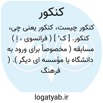 کنکور. [ ک ُ ] ( فرانسوی، اِ ) مسابقه ( مخصوصاً برای ورود به دانشگاه یا مؤسسه ای دیگر ). ( فرهنگ فارسی معین ).