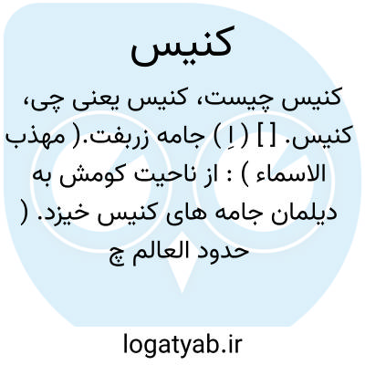 کنیس. [ ] ( اِ ) جامه زربفت.( مهذب الاسماء ): از ناحیت کومش به دیلمان جامه های کنیس خیزد. ( حدود العالم چ دانشگاه ص 146 ).