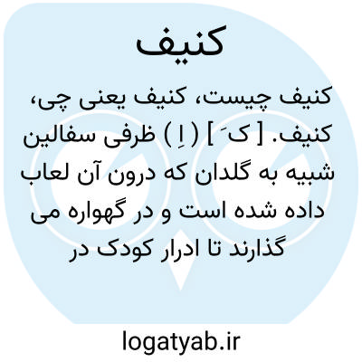کنیف. [ ک َ ] ( اِ ) ظرفی سفالین شبیه به گلدان که درون آن لعاب داده شده است و در گهواره می گذارند تا ادرار کودک در راه «لله » در آن جمع شود. ( فرهنگ لغات عامیانه جمالزاده ). ظرفی سفالین که بر گهواره نهند بول و غائط کودک را. ظرفی سفالین که به زیر گاهواره پیوندند تا فضول شیرخواره درآن ریزد. ( یادداشت به خط مرحوم دهخدا ):