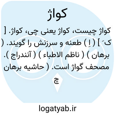 کواژ. [ ک َ ] ( اِ ) طعنه و سرزنش را گویند. ( برهان ) ( ناظم الاطباء ) ( آنندراج ). مصحف گواژ است. ( حاشیه برهان چ معین ). و رجوع به گواژ و گواژه شود: